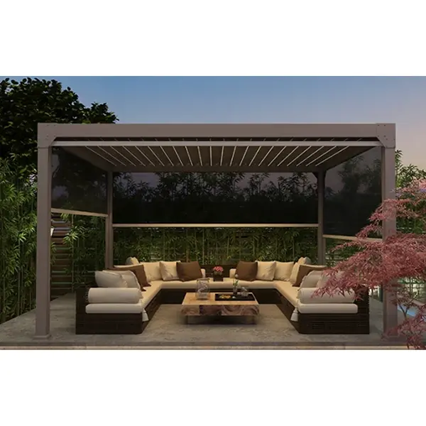 ပရော်ဖက်ရှင်နယ် gazebo ထုတ်လုပ်သူအနေဖြင့်၊ ကျွန်ုပ်တို့သည် တင်သွင်းလာသော အသံတိတ်မော်တာများနှင့် လျှို့ဝှက်ရေနုတ်မြောင်းစနစ်တို့ကို ပေါင်းစပ်ထားသော လျှပ်စစ် Retractable Gazebos တွင် စေ့စပ်သေချာသော ဒီဇိုင်းကို ပေါင်းစပ်ထားပါသည်။ ၎င်းသည် ကျွန်ုပ်တို့၏ gazebos များတွင် ဉာဏ်ရည်ထက်မြက်သော ထိန်းချုပ်မှု၊ ဖွဲ့စည်းတည်ဆောက်ပုံဆိုင်ရာ တည်ငြိမ်မှုနှင့် ရာသီဥတုဒဏ်ခံနိုင်မှု၏ အဓိကဝိသေသလက္ခဏာများ ပါဝင်ကြောင်း သေချာစေပြီး အရွယ်အစား၊ အရောင်နှင့် လုပ်ဆောင်နိုင်သော မော်ဂျူးများကို စိတ်ကြိုက်ပြင်ဆင်မှုကိုလည်း ပံ့ပိုးပေးပါသည်။ ၎င်းတို့သည် အလင်းရောင်နှင့် ရိုလာကာကာများကဲ့သို့သော ဆက်စပ်ပစ္စည်းများကို ပေါင်းစပ်နိုင်ပြီး၊ ဗီလာဝင်းများ၊ လှေကားထစ်များနှင့် စီးပွားရေးအပန်းဖြေနေရာများကဲ့သို့ အမျိုးမျိုးသောအခြေအနေများတွင် လိုက်လျောညီထွေဖြစ်အောင်၊ ပြင်ပနေရာအမျိုးမျိုးအတွက် စမတ်ကျပြီး လက်တွေ့ကျသောအပန်းဖြေအတွေ့အကြုံကို ဖန်တီးပေးနိုင်သည်။